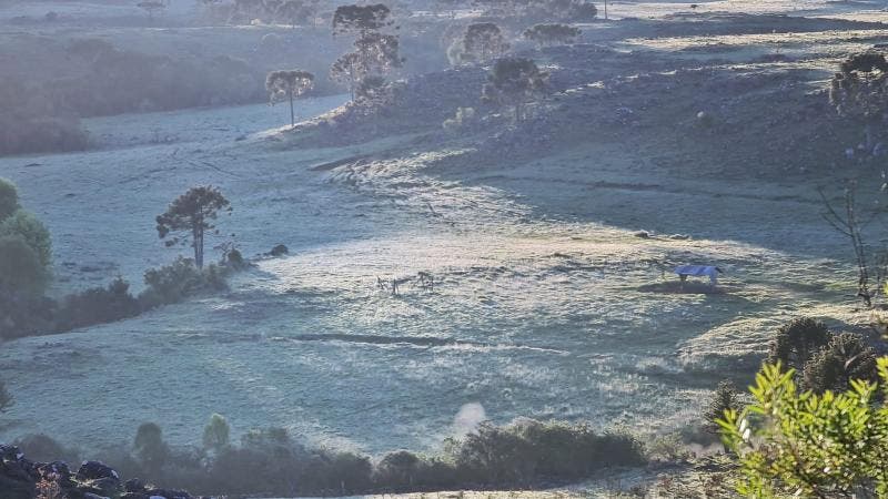 Na segunda-feira (25), a formação de geada chegou a cobrir o teto de um carro. As temperaturas também ficaram baixas no amanhecer. Em Bom Jardim da Serra e Urupema, os termômetros alcançaram 0,9ºC.