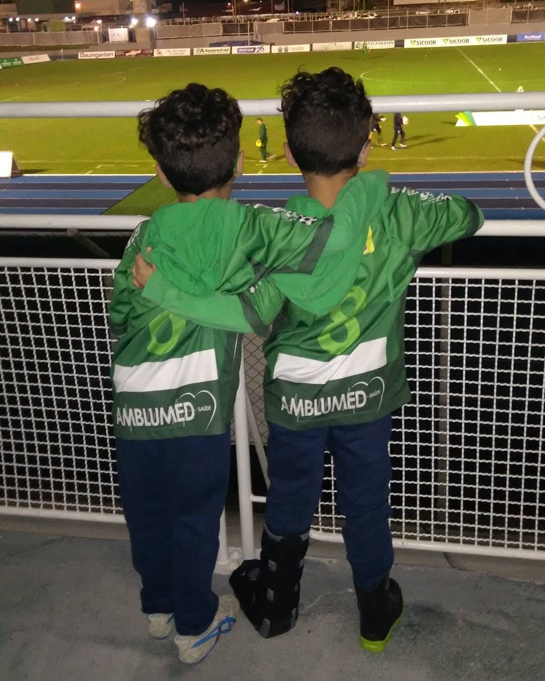 Os gêmeos João Augusto e João Vicente Gonçalves viveram um momento inesquecível. Aos 13 anos, apaixonados pelo Metropolitano, os meninos de Blumenau passaram juntos na peneira do clube e agora fazem parte da categoria Sub-15 do verdão. Eles foram dois dos nove selecionados entre os quase 100 candidatos.
