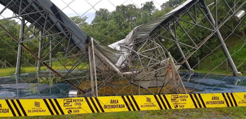 A chuva que caiu nesta sexta-feira em Blumenau causou alguns estragos. O principal deles, segundo a Defesa Civil, foi na Escola Básica Municipal Hella Altenburg, no bairro Salto. O telhado cedeu com a força da chuva e a estrutura ficou completamente destruída.