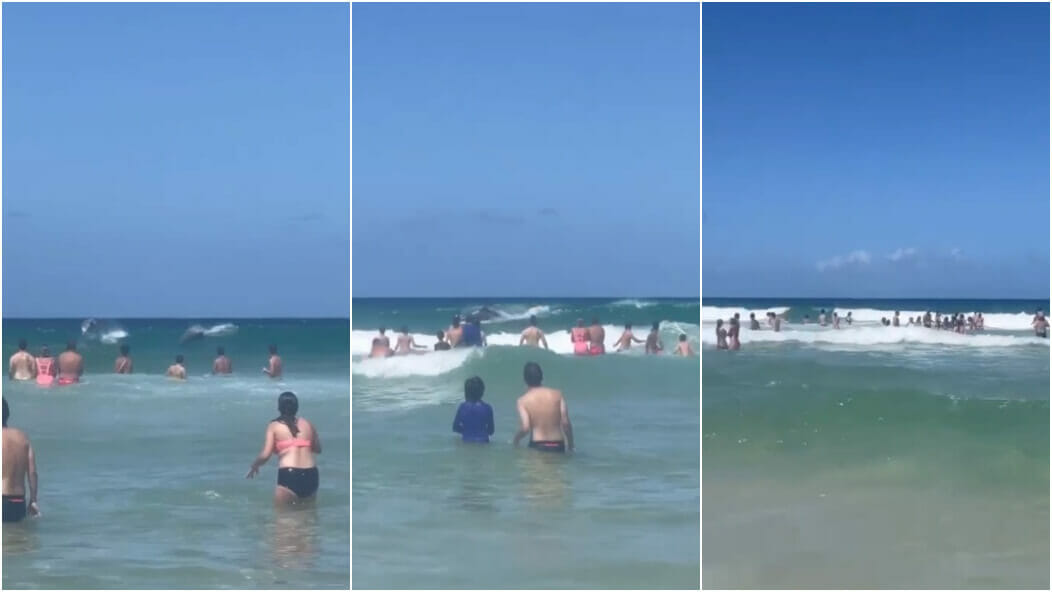 A moradora Eduarda Ferreira Rojas foi uma das que filmou a cena e narra ter presenciado um “espetáculo”. Ela afirma que eram ao menos dois golfinhos, surgidos no mar por volta das 15h.