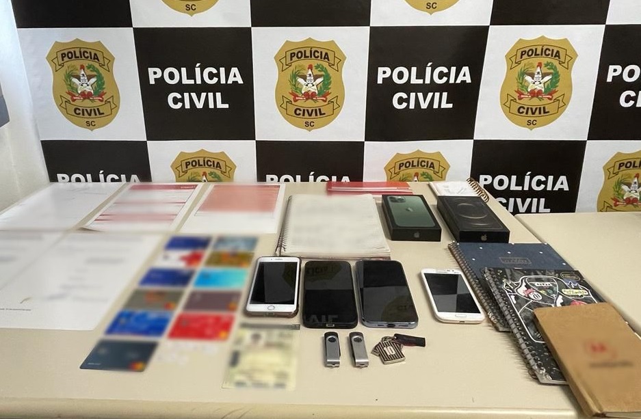 Suspeitos de aplicarem um golpe de falso aluguel de imóveis de luxo para a locação de temporada foram alvo de uma operação de busca e apreensão da Polícia Civil em São José, na Grande Florianópolis, nesta quarta-feira (23). Foram recolhidos celulares utilizados no esquema, anotações sobre abordagem às vítimas, cartões bancários e documentos falsos.