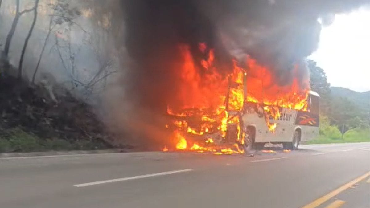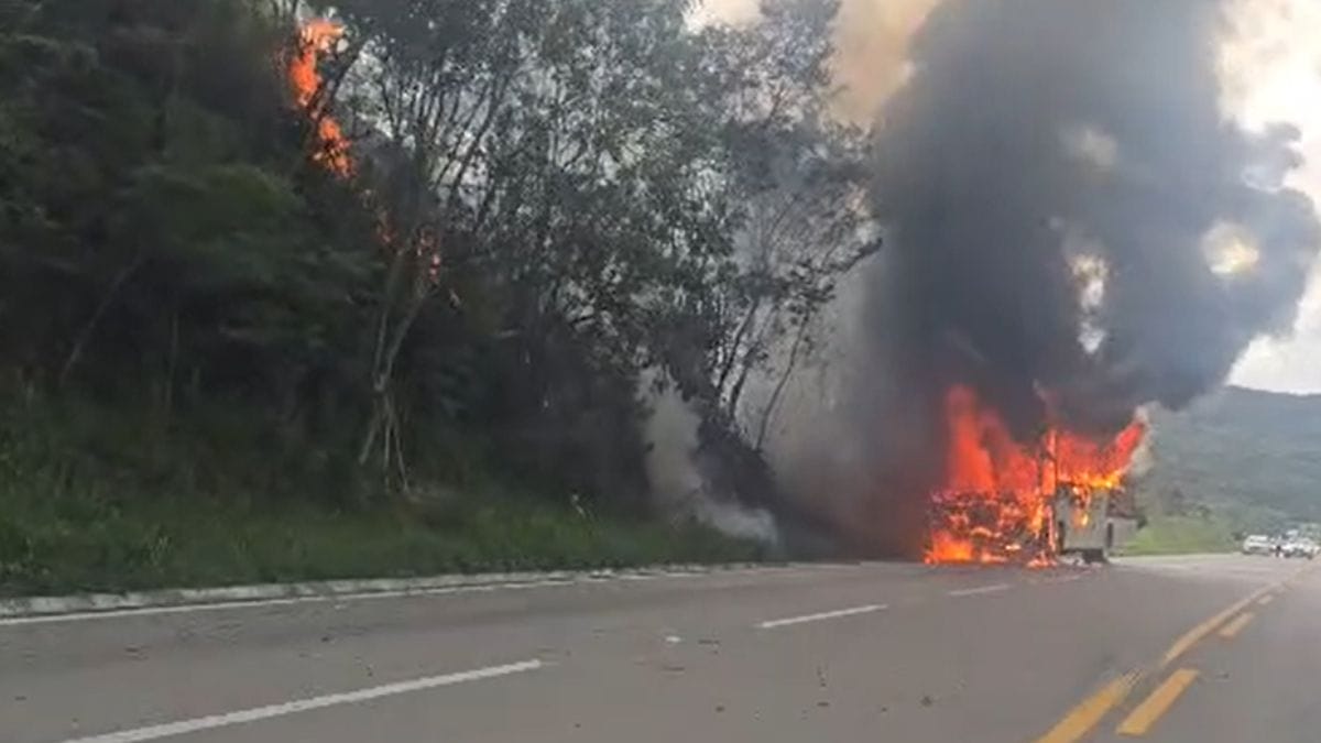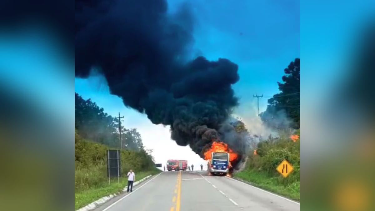 Um ônibus de turismo foi atingido por um grande incêndio na SC-418, em um trecho entre São Bento do Sul e Campo Alegre, na tarde desta terça-feira (16). O fogo e a fumaça tomaram conta da rodovia e chamaram atenção de motoristas que passavam pelo local, no Km 52.