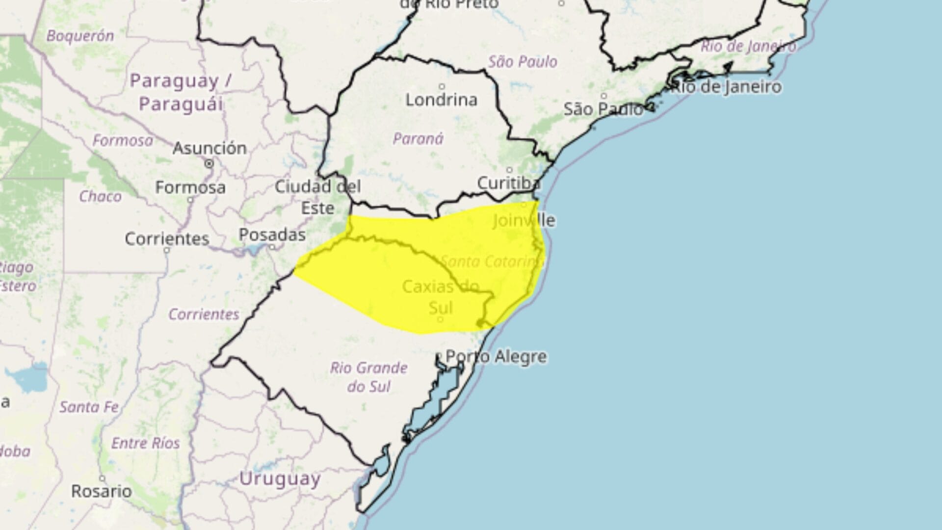 O alerta de tempestades também vale para o Rio Grande do Sul e Paraná, que sofreu com um tornado que deixou sete mortos no último final de semana.