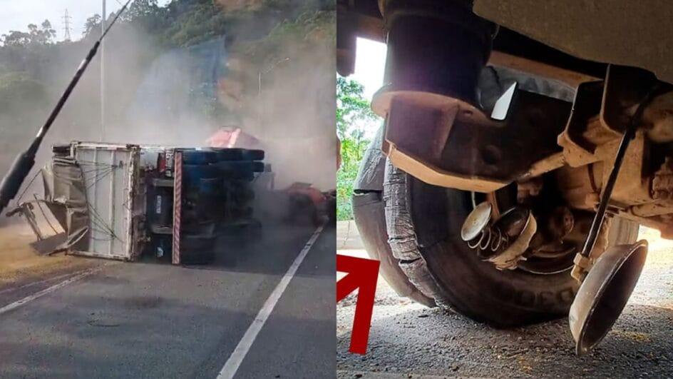Freio adulterado, pneus desgastados, cronotacógrafo vencido e dispositivo não autorizado são algumas das irregularidades registradas na carreta que tombou na manhã desta terça-feira (18) na BR-376. Segundo a Polícia Rodoviária Federal (PRF), o veículo circulava com “graves falhas de segurança”.