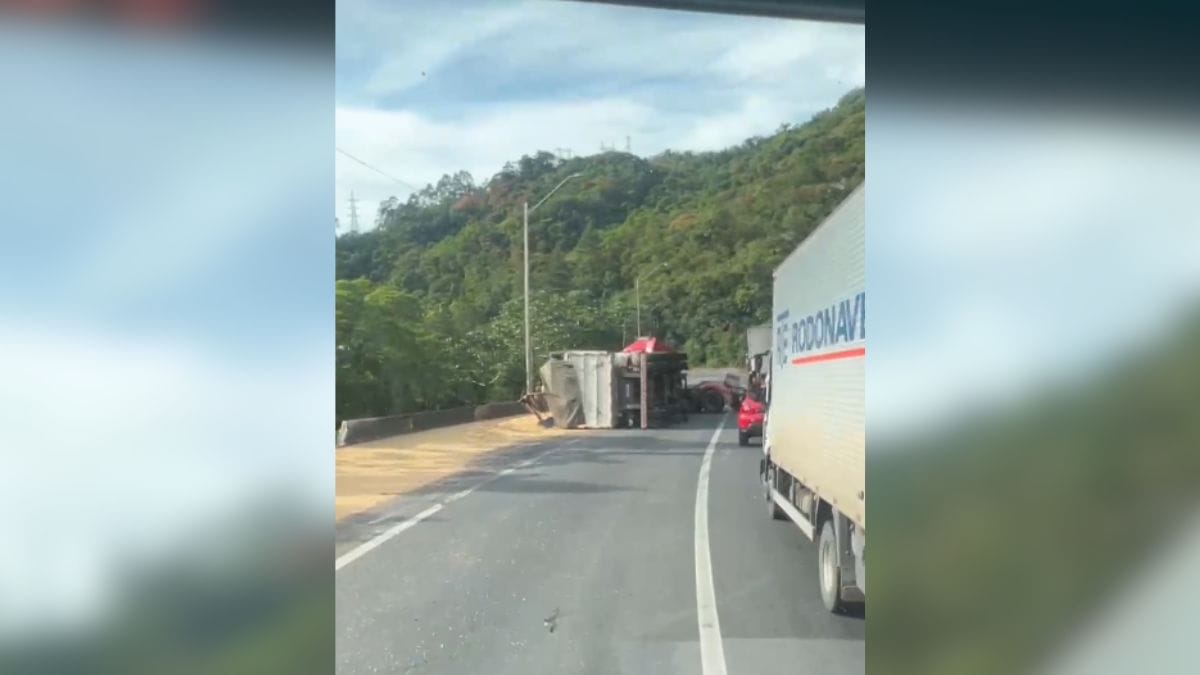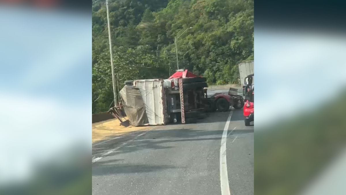 Conforme a PRF, após tombar, a carga de soja se espalhou pela pista, causando a interdição total do tráfego por quase três horas. Não houve vítimas. A Arteris Litoral Sul e a PRF foram acionadas para atender a ocorrência.