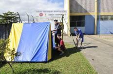 Quatro garotos passaram a noite montando um acampamento modelo com barracas, bambus e cordas. Até uma torre de monitoramento foi desenvolvida pelos escoteiros. A exposição ficará aberta durante toda a tarde para visitação. O evento encerra com a noite do pastel, uma confraternização entre membros e as famílias.