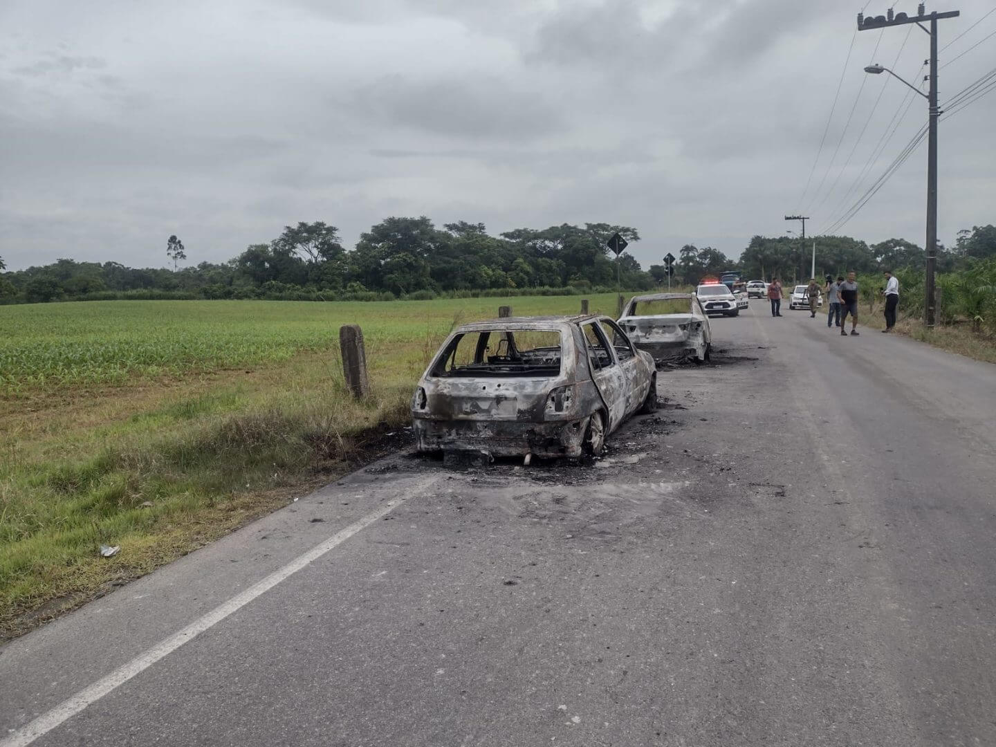 Do grupo, cinco foram presos e o restante fugiu para o matagal. Além de viaturas da polícia, o helicóptero Águia faz sobrevoos na região em busca dos fugitivos. Os bombeiros também foram acionados para combater as chamas dos carros.