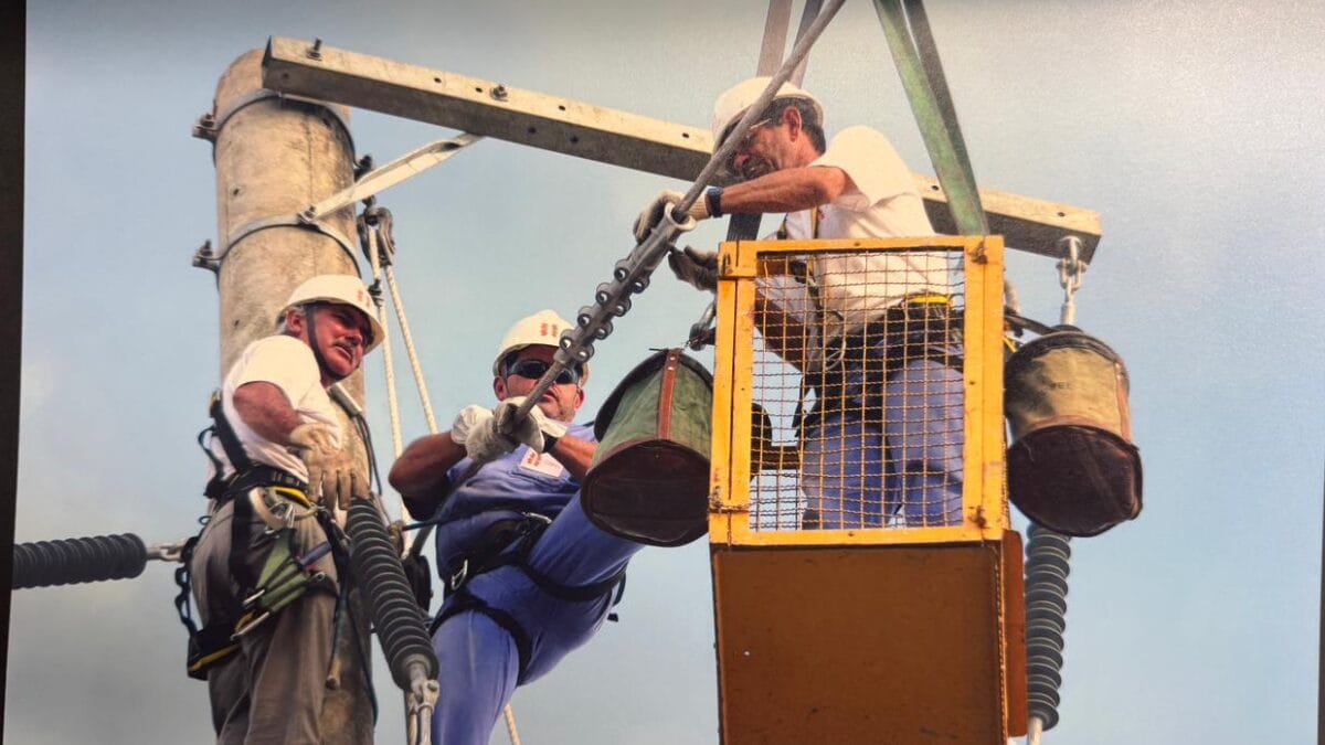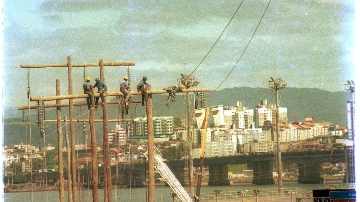 Ao mesmo tempo, outra equipe da Celesc, da Ponte Colombo Salles até a subestação Ilha-Centro, implantando postes e lançando cabos. Também na Ilha, outra equipe fazia o mesmo trabalho até as proximidades do José Mendes, ponto até onde a linha é subterrânea e depois segue de forma aérea.