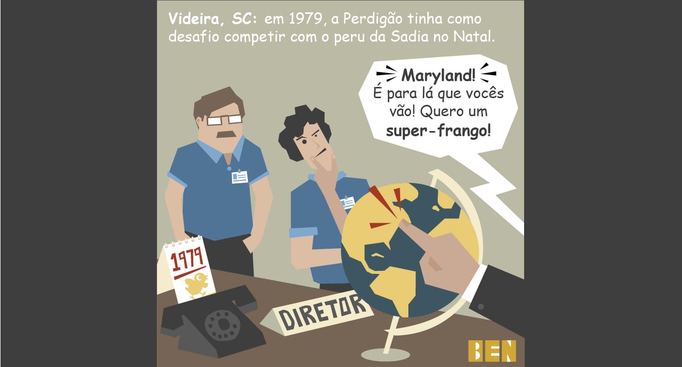 Na época, a Sadia vendia perus, mas a Perdigão não. O animal, nativo da América do Norte, tem até hoje um custo de produção mais caro do que o frango, devido à menor eficiência na produção de ovos, à cadeia produtiva mais complexa, entre outros fatores.