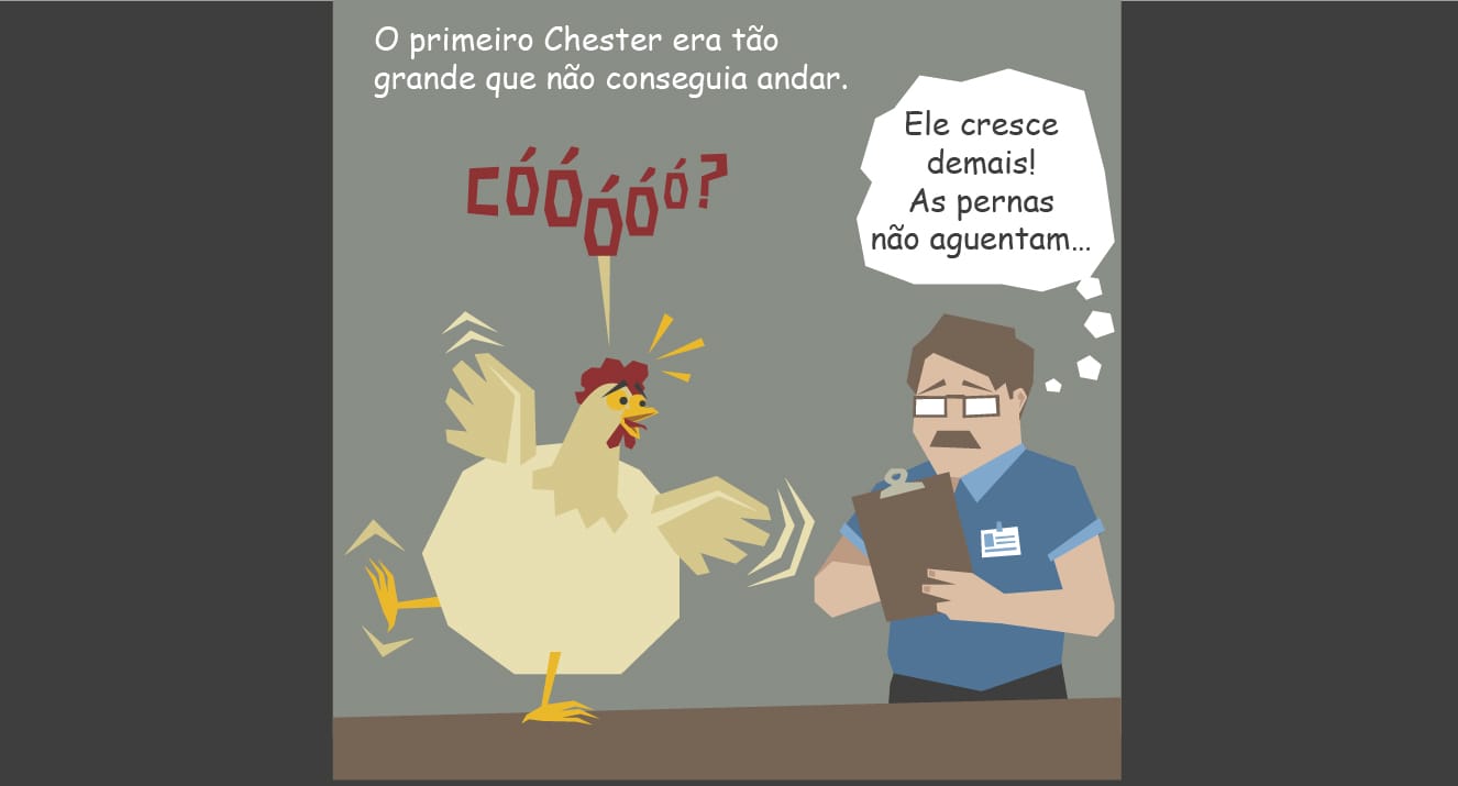 Por ser maior e mais pesada que um frango comum, a produção exigiu adaptações até no abate. O Chester era abatido separadamente, em linhas específicas, em um frigorífico de Capinzal, próximo a Videira.