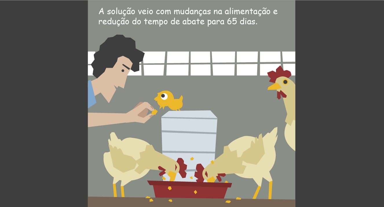 As primeiras produções, no entanto, ficaram aquém do esperado. Inicialmente, as aves demoravam até 84 dias para atingir o peso desejado. Além disso, a seleção inicial privilegiava tanto a deposição de carne, que os ossos não acompanhavam o ritmo de crescimento.
