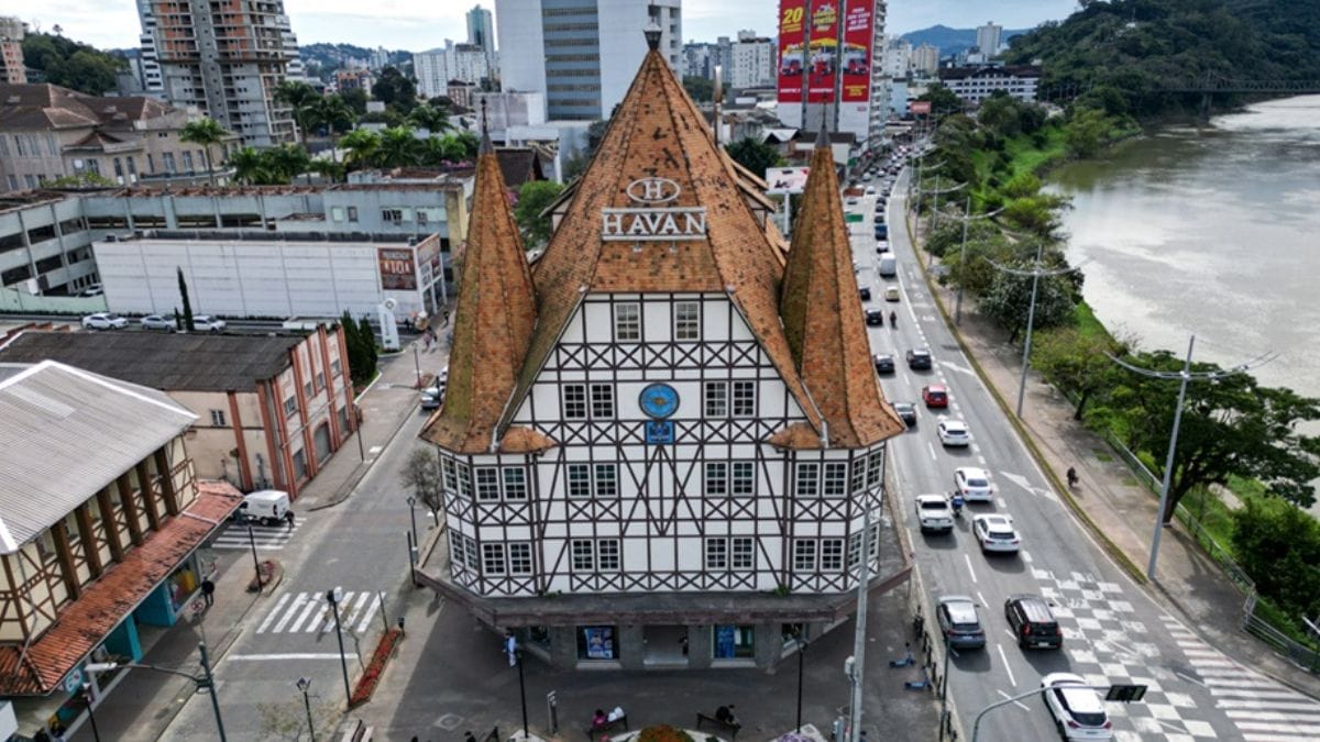 Na prática, hoje a única Havan que foge dos padrões da rede (ou seja, branca, com grandes pilares, estátua da liberdade) é essa loja do Centro de Blumenau, justamente por ter arquitetura inspirada no enxaimel. Quando a nova Havan ficar pronta, no começo do próximo mês, as duas mais diferentonas estarão separadas por uma distância de pouco mais de 1,4 mil metros.