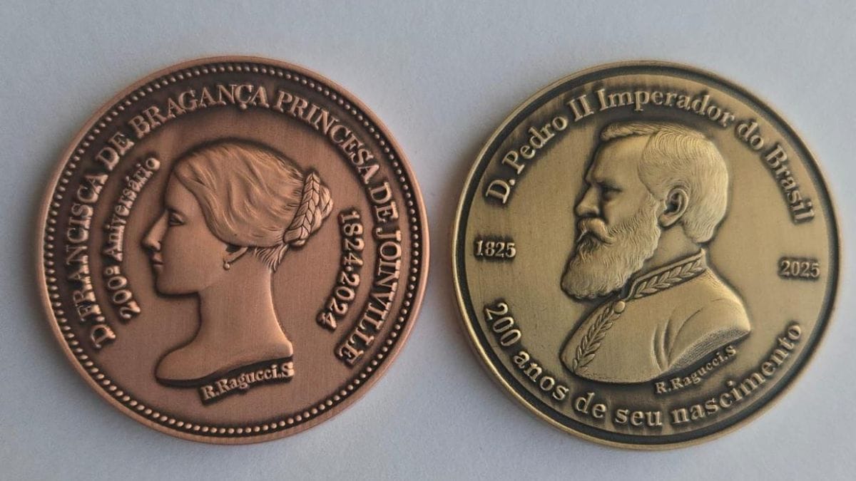 Além disso, os associados de Joinville possuem coleções com diversos exemplares. Entre eles está uma moeda que vale R$ 14 mil, emitida durante o período Colonial, na monarquia de Maria I, ou “Maria, a Louca”. O item que valia 6,4 mil réis é feito de ouro e foi cunhada pela Casa da Moeda da Bahia.