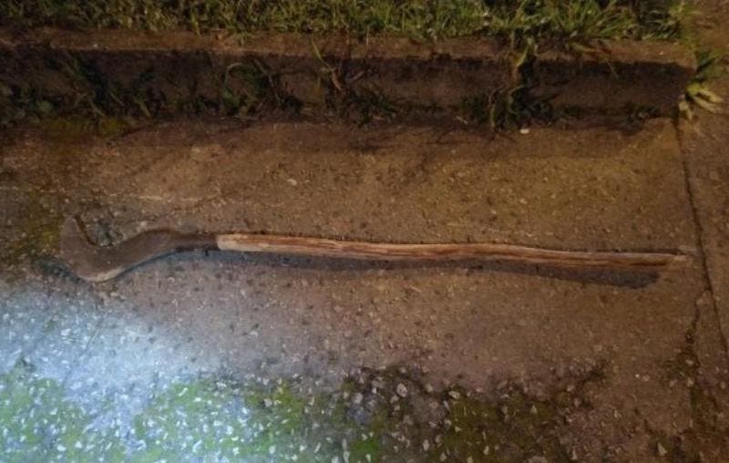 Os dois foram levados para a delegacia e a foice foi apreendida.
