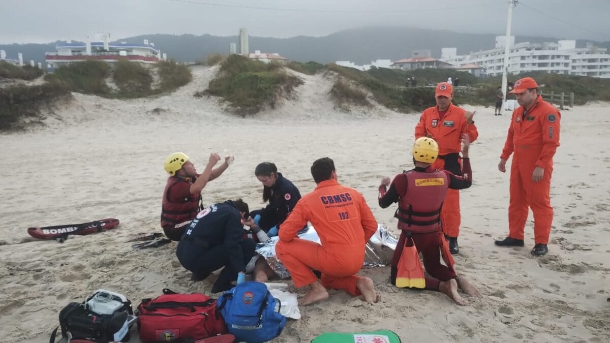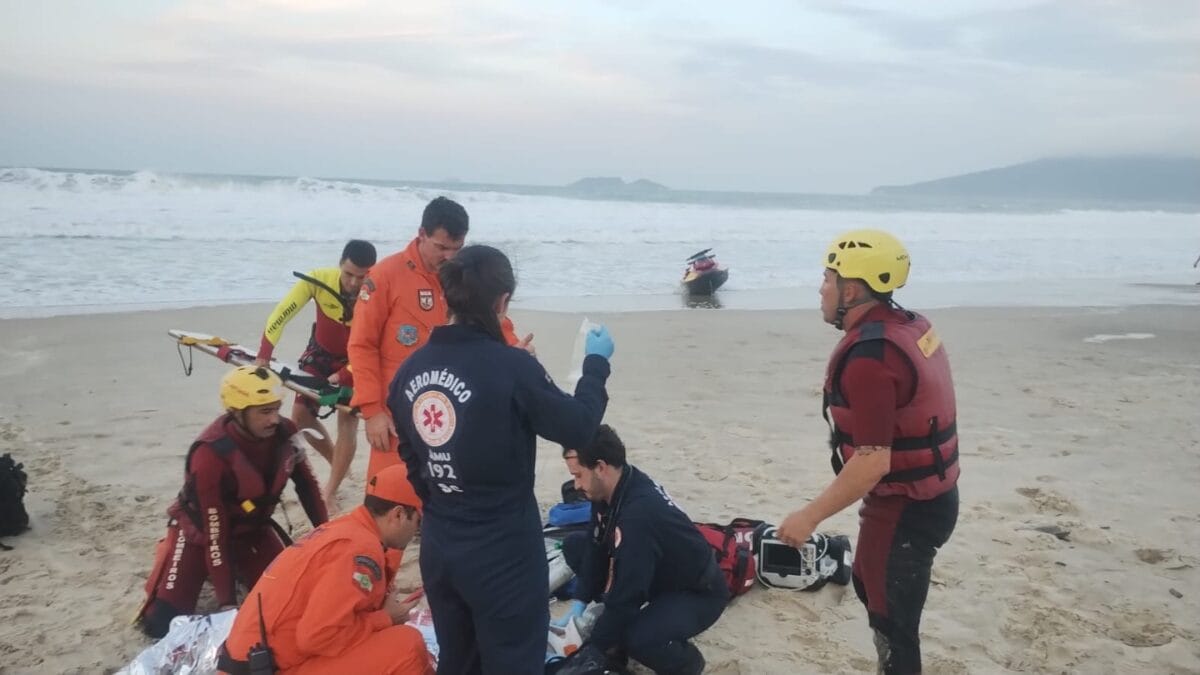 A vítima foi resgatada pela moto aquática e levada para a areia da Praia dos Ingleses. De acordo com os bombeiros, as condições do mar no momento do resgate eram “extremamente adversas”.