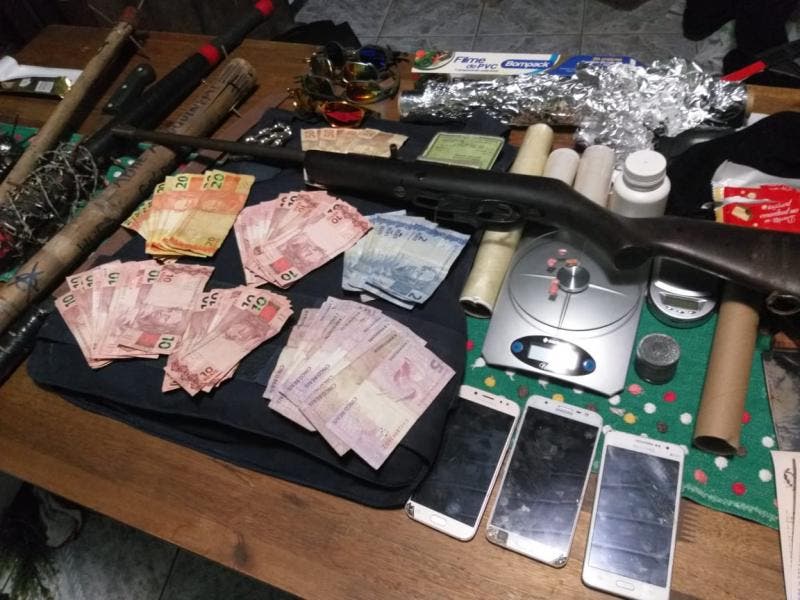 Na casa dele a PM encontrou drogas, balança de precisão, dinheiro, munição e um colete balístico.
