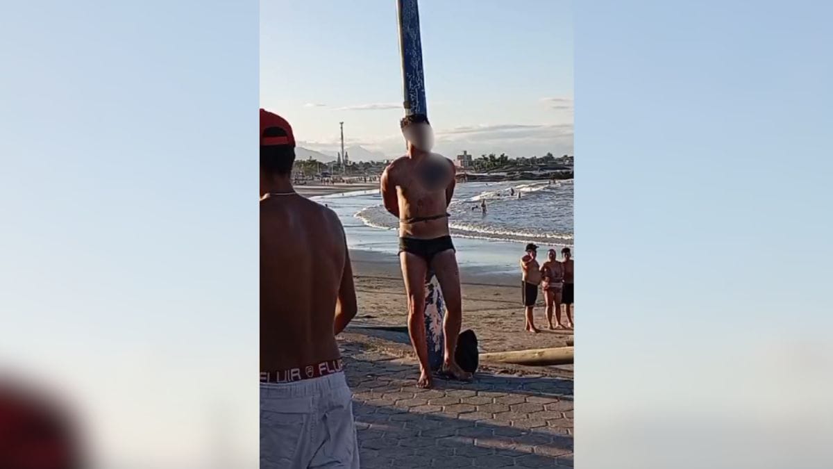 Um homem foi agredido por banhistas em uma praia de Itapoá no fim da tarde de quinta-feira (6). Ele foi amarrado e alvo de agressões após ter, supostamente, se masturbado na água e mostrado a parte íntima para crianças que estavam no local. A Polícia Militar precisou intervir na ação e o homem foi levado ao atendimento médico.