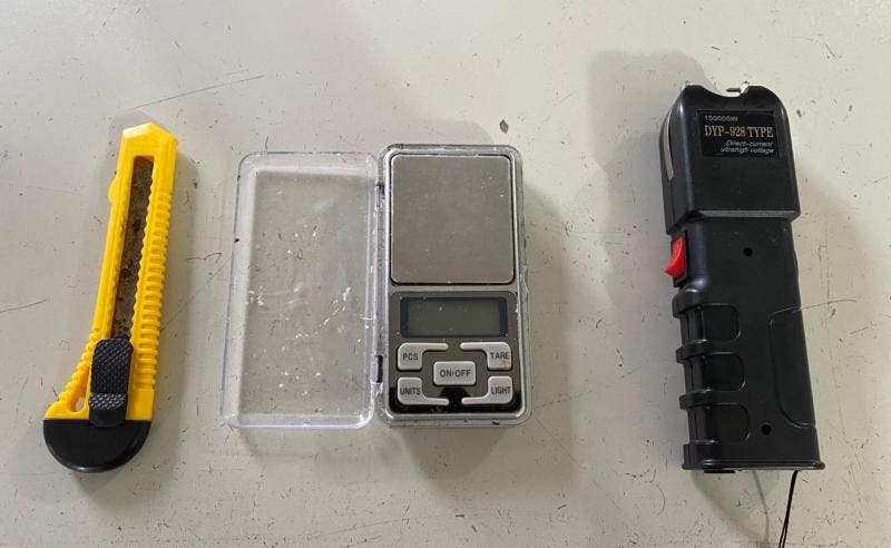 Na casa, a PM encontrou 115g de maconha, uma balança de precisão, a espada e o aparelho de choque. A mulher foi presa em flagrante. Ela já possuía outras 15 passagens pela polícia. O marido, que conseguiu fugir, foi localizado em Balneário Camboriú na tarde deste domingo (4).