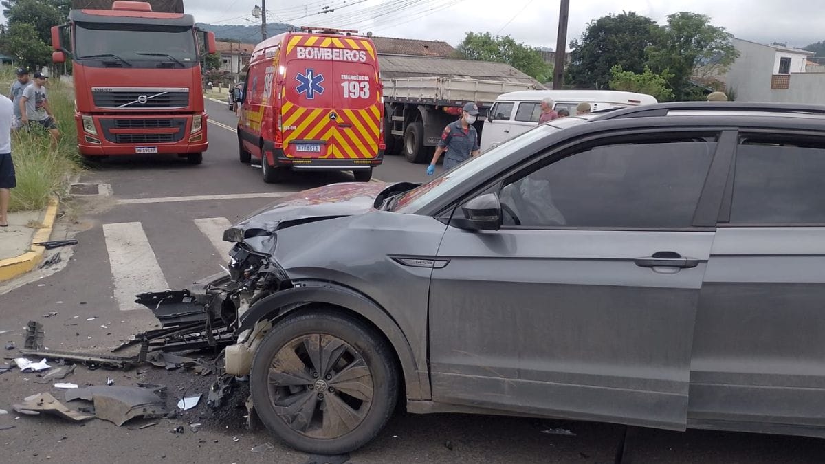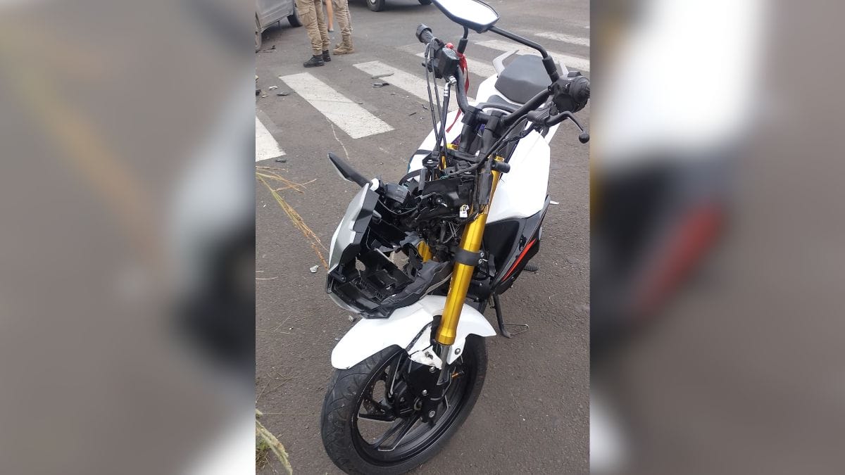 O acidente foi registrado por volta das 8h na Rua Professor Weinand, bairro Santa Rosa. A batida envolveu um carro T-Cross cinza e moto branca JTZ Suzuki, pilotada pela vítima.