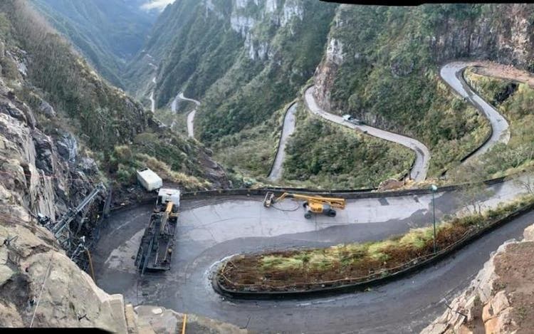 Há um ano em obras, a Serra do Rio do Rastro está fechada para o tráfego de veículos durante o dia. A intervenção de mais de R$ 19 milhões é para a instalação de telas metálicas para conter deslizamentos de pedras na pista. A expectativa é de que as obras sejam concluídas em outubro.