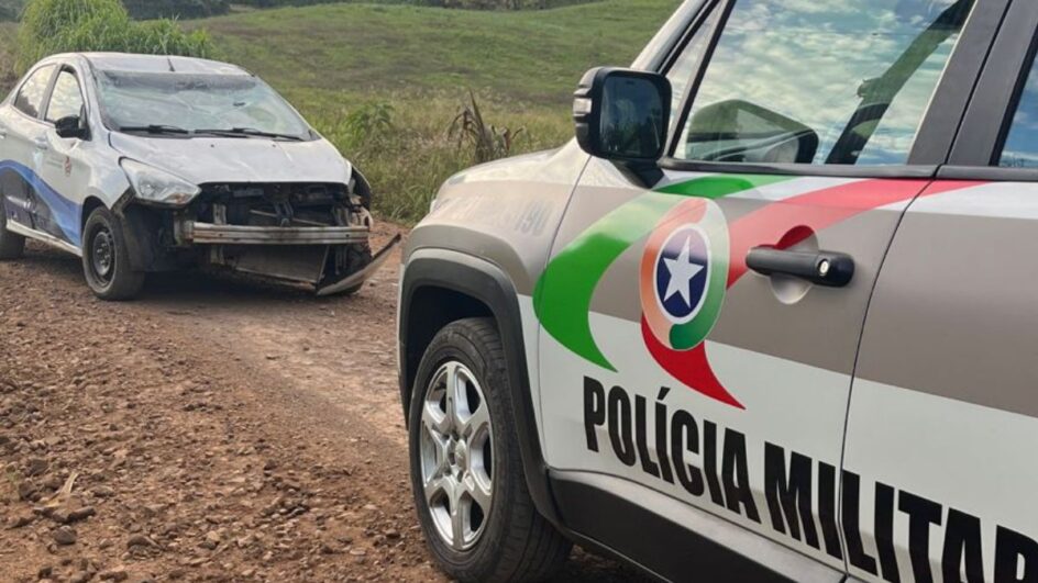 Após buscas nas imediações, os policiais localizaram o veículo, um Ford Ka utilizado pela assistência social do município de Ponte Serrada, a cerca de 500 metros do local do acidente. O suspeito foi encontrado tentando religar o automóvel para fugir, mas acabou detido.