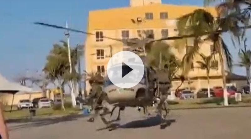 Veja vídeo do momento que homem tenta “pegar carona” no helicóptero da PM