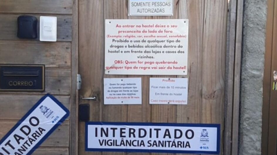 Um hostel que oferecia serviços em condições precárias foi interditado pela segunda vez em Joinville. O albergue havia sido interditado pela primeira vez em janeiro, mas voltou a funcionar e, por isso, foi alvo de uma nova ação na quarta-feira (8). A operação foi realizada pelo Grupo de Ação de Ordem Pública (GAOP), que une a prefeitura da cidade e as forças de segurança.