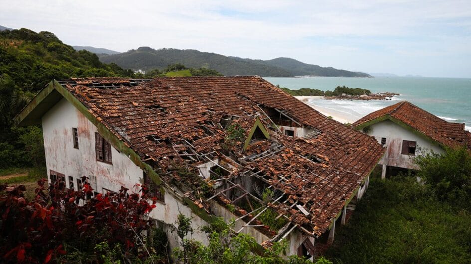 Na praia das Bananeiras, em Governador Celso Ramos, as ruínas do que um dia foi o glamouroso Hotel Tinguá atraem curiosos. O local paradisíaco é o cenário do fim trágico de uma família após a morte da proprietária do hotel, que ficou de herança para os filhos.