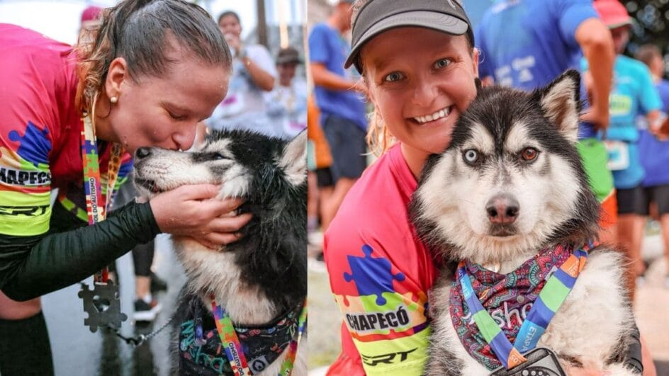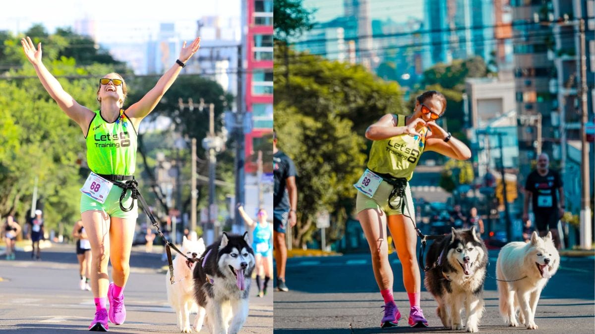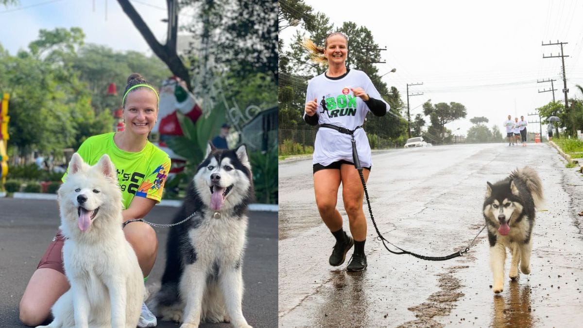 A enfermeira Vanessa Schons, de 32 anos, moradora de Chapecó, encontrou na corrida com suas cachorras uma forma de manter a saúde em dia e fortalecer o vínculo com os animais. Ela treina e participa de provas ao lado de Misha, uma Husky Siberiana que vai completar 4 anos, e Yuki, da mesma raça, com 9 meses.