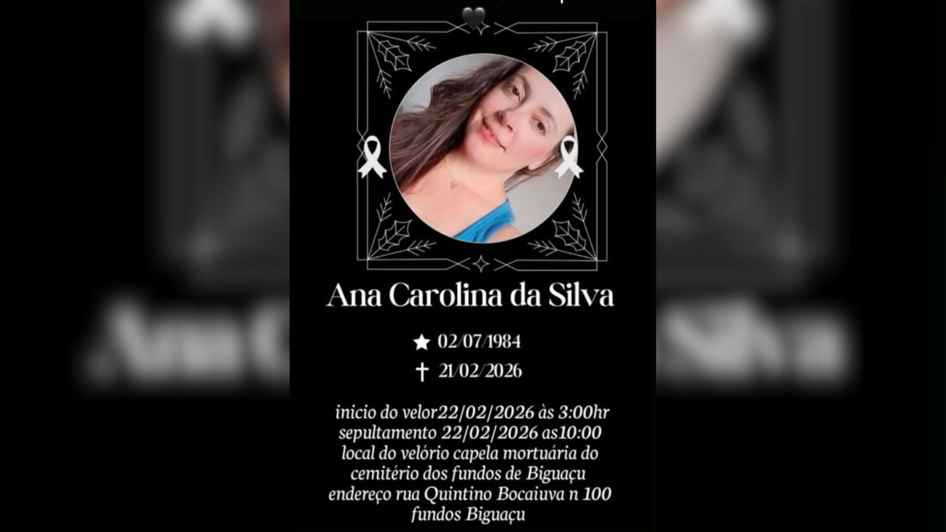 Familiares e amigos puderam se despedir de Ana no velório que ocorreu na capela mortuária no Cemitério Municipal São João Evangelista, localizado no bairro Fundos, em Biguaçu, às 15h deste sábado.