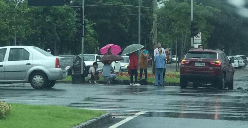 A conversão que a motorista de 30 anos fez no cruzamento e acabou causando o acidente é proibida. Há câmeras de monitoramento na região que flagraram o ocorrido. Ela não teve ferimentos. O condutor caiu sobre o canteiro que divide as pistas da Rua Alberto Stein.