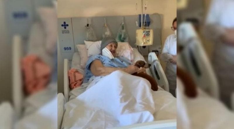 A idosa está internada em uma ala não Covid, mas não foi informado seu estado de saúde. No entanto, segundo a enfermeira Roberta Marco, coordenadora do Pata Amiga, se percebe que ela ficou mais tranquila após a visita.