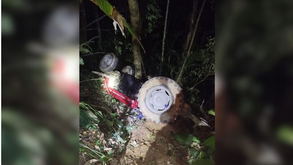A família contou que ele tinha saído para fazer remoção de madeira e, como não voltou, foram procurá-lo. Foi aí que se depararam com o trator capotado em uma ribanceira às margens da Rua Braço do Sul e o idoso preso embaixo. O veículo parou de rodas para cima ao atingir uma árvore e só por isso não deslizou ainda mais, como mostram as fotos abaixo feitas pela corporação.