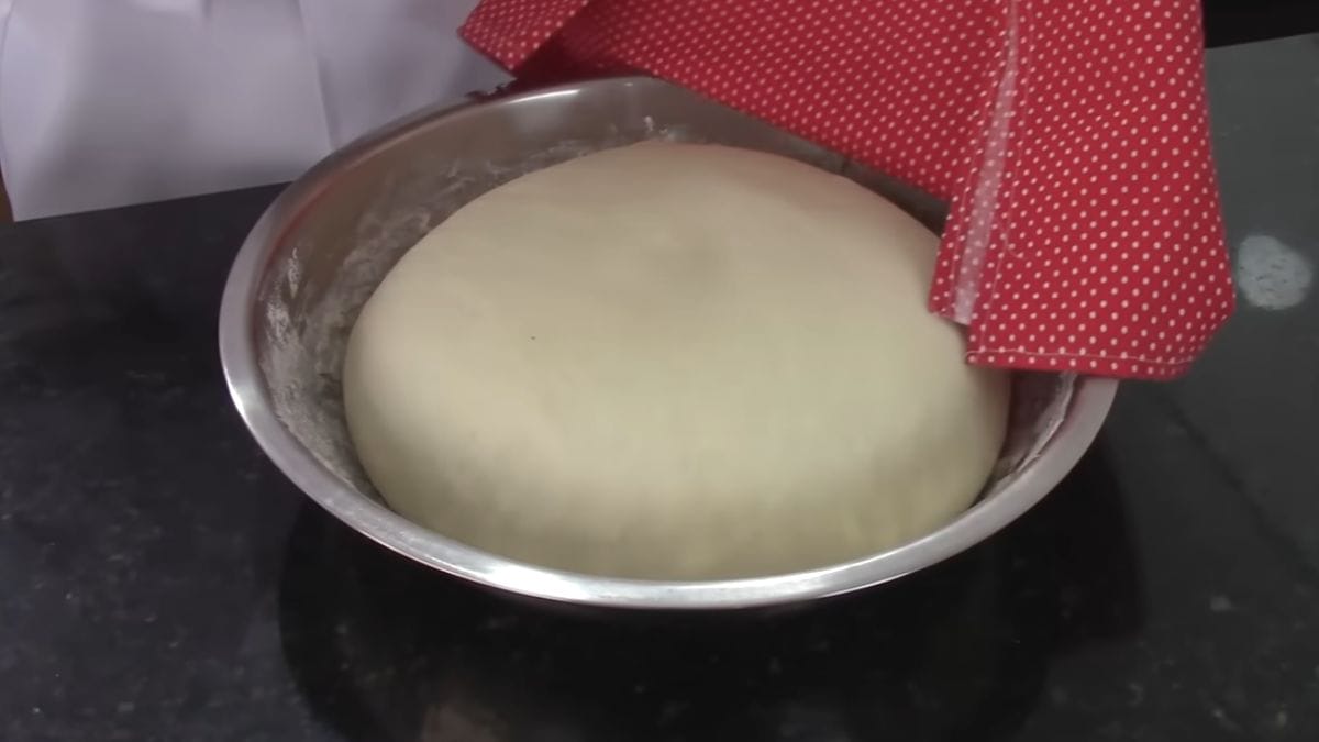 - Deixe a massa descansar na vasilha, coberta, por 10 minutos.