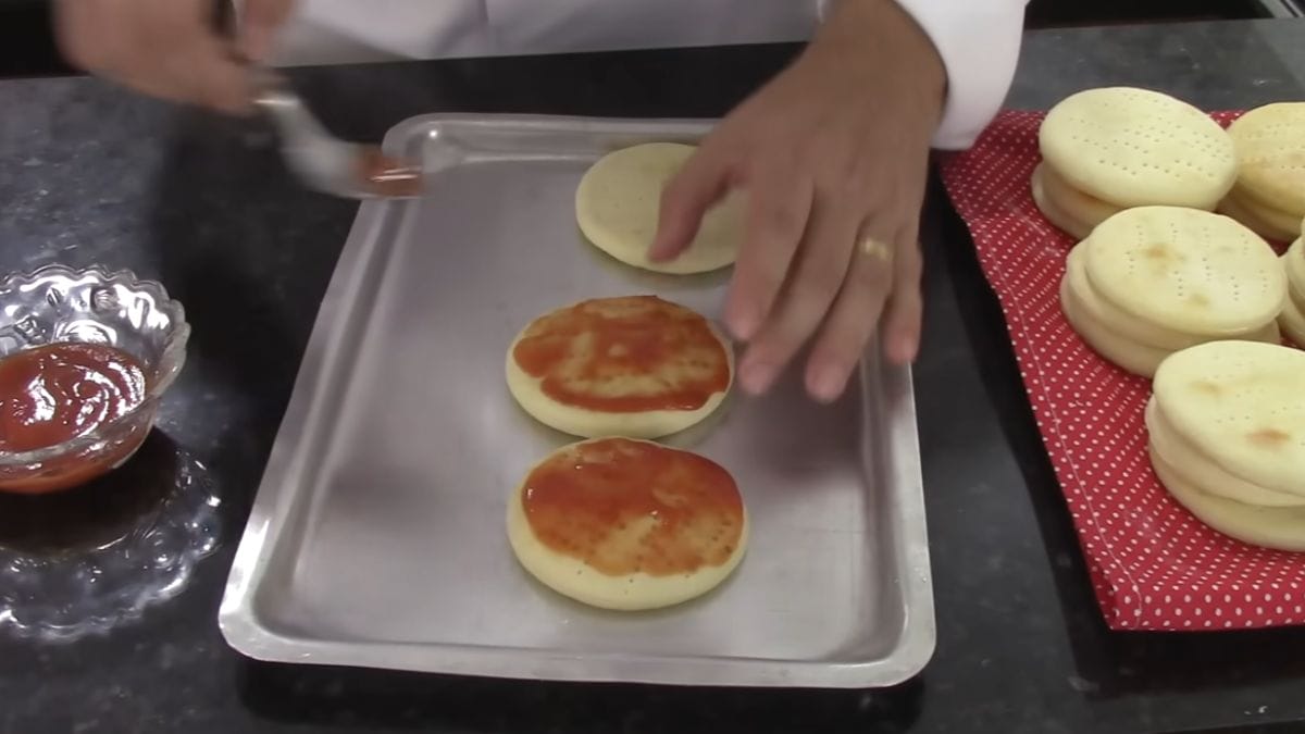 - Organização na bancada: Ao abrir a massa, procure manter uma espessura uniforme de 3mm. Se as bordas ficarem muito grossas, a mini pizza não terá um cozimento por igual.