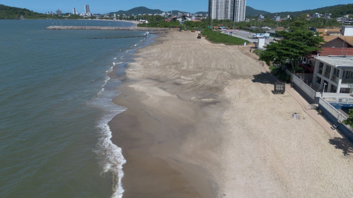 Veja fotos de como está o alargamento da praia de SC