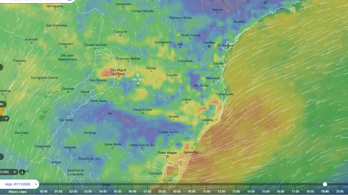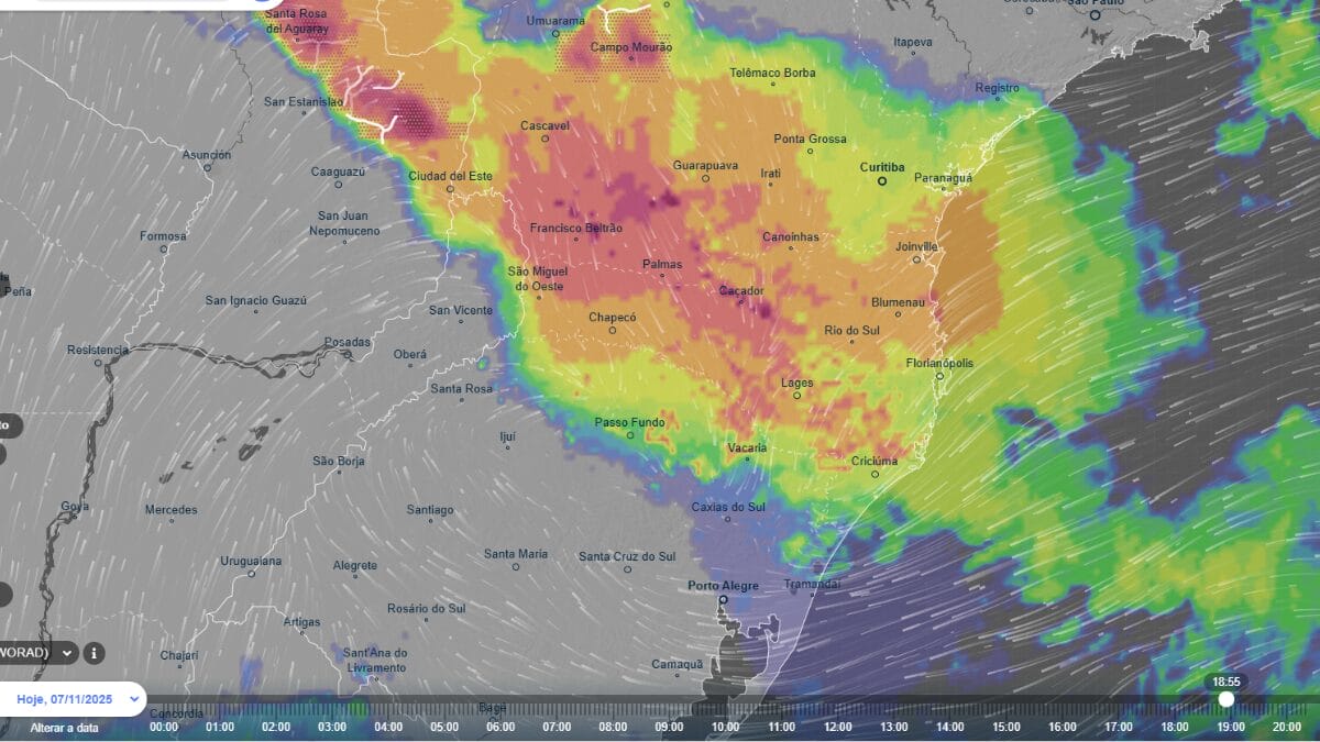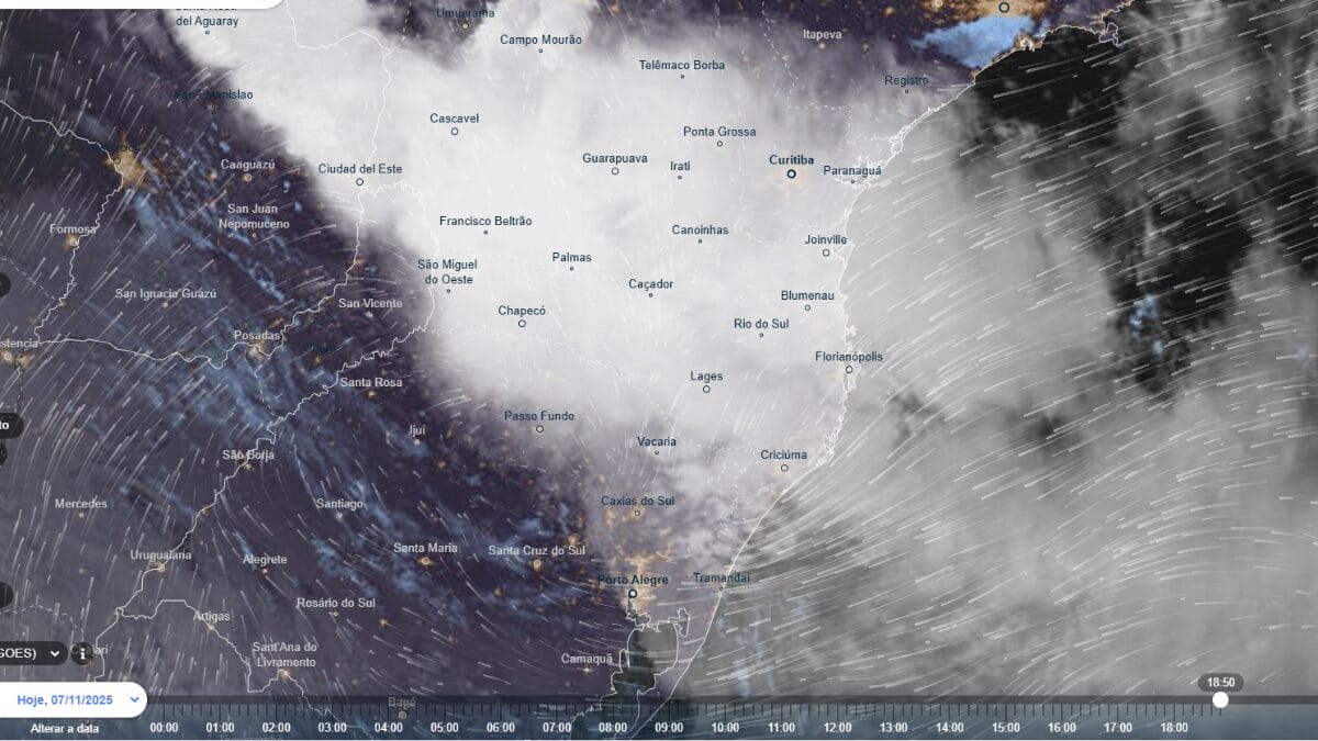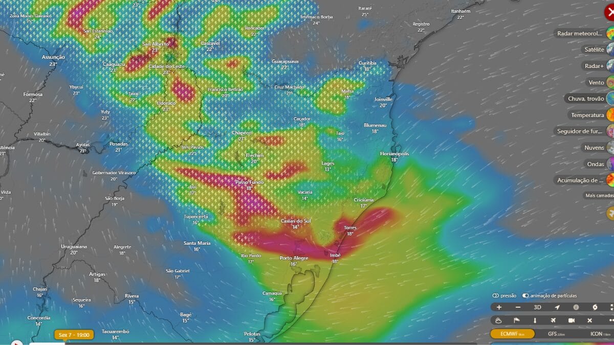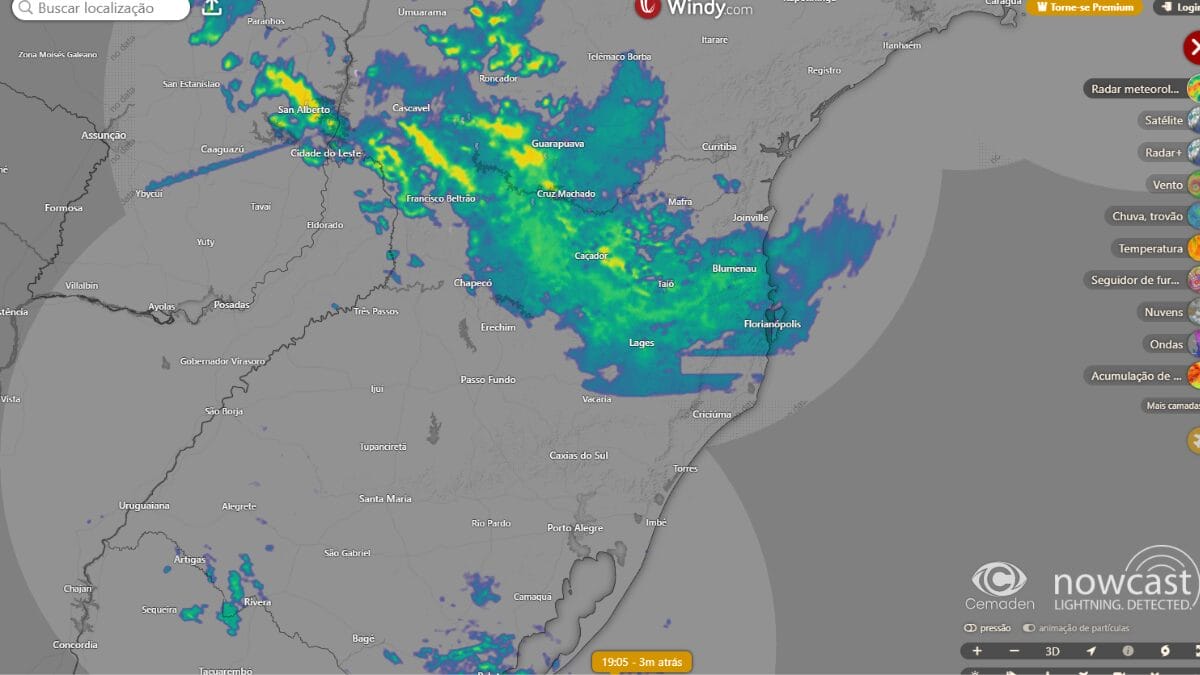 Imagens obtidas através de ferramentas de visualização de previsão do tempo possibilitar ver de forma ampla a atuação do ciclone extratropical que passa por Santa Catarina nesta sexta-feira (7). As imagens de satélite e representações feitas através de radares meteorológicas mostram de forma gráfica os locais em que os ventos e as chuvas atuam de forma mais intensa na noite desta sexta.