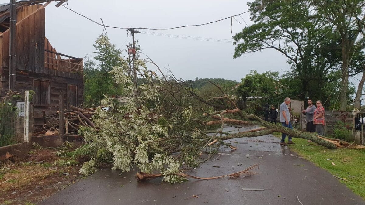 Em Faxinal dos Guedes, ainda no Oeste, os fortes ventos derrubaram uma árvore de grande porte, causaram danos estruturais e deixaram casas destelhadas. Uma residência foi totalmente destelhada, deixando duas pessoas desalojadas, acolhidas por familiares. A cidade avalia o decreto de situação de emergência.