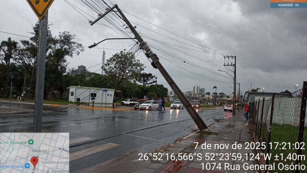 As fortes chuvas registradas ao longo da tarde e noite desta sexta-feira (7) provocaram diversos estragos em cidades de Santa Catarina. Segundo a Defesa Civil, há registros de ruas alagadas, escola danificada e deslizamentos ocasionados por uma tempestade associada a passagem de um ciclone extratropical. Em Caibi, no Oeste do Estado, os ventos ultrapassaram 85 km/h.