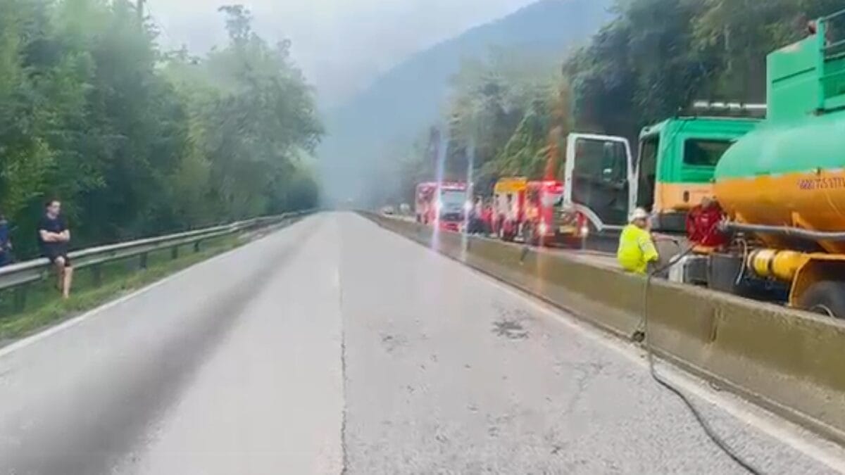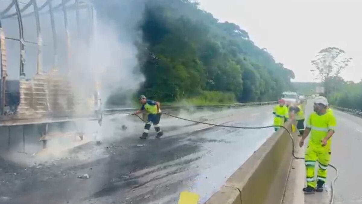 A fumaça era visível a quilômetros de distância, assustando quem estava parado na fila. Por causa do incêndio, os dois sentidos da rodovia foram bloqueados. Às 19h42min, uma faixa do sentido Sul foi liberada, conforme a Arteris Litoral Sul, concessionária que administra o trecho. Por volta das 21h05min, a faixa da esquerda no sentido Norte foi liberada.