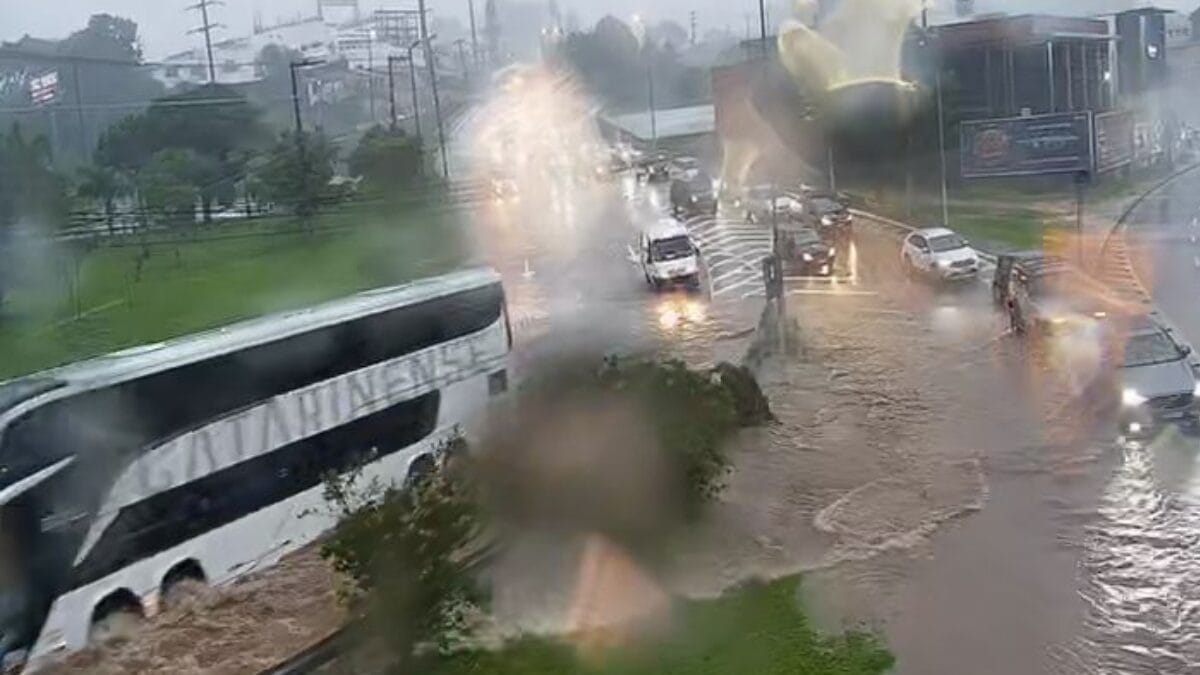 Cidades da Grande Florianópolis registraram diversos pontos de alagamento entre o final da tarde e o início da noite desta segunda-feira (29). Florianópolis e Palhoça foram as mais atingidas, sendo que a capital registrou 120 milímetros de chuva em um período de três horas.