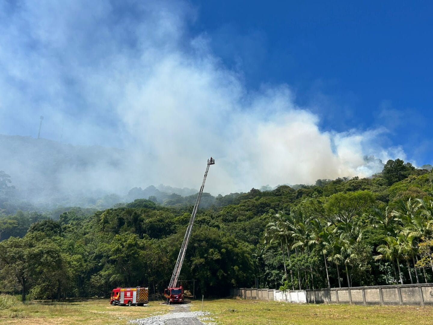 Até as 14h o funcionamento do Unipraias não havia sido afetado. Apesar do vento levar fumaça em direção aos teleféricos, não há risco para as atrações, informou o local, que fica distante do ponto em que o incêndio está concentrado.