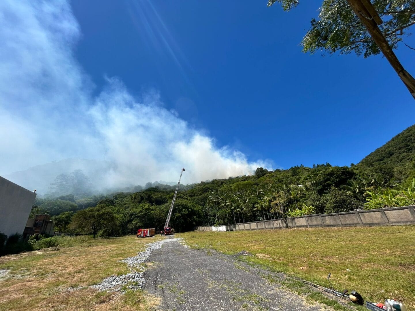 Um incêndio em mata em Balneário Camboriú mobiliza os bombeiros militares no começo da tarde desta segunda-feira (26). A fumaça é tanta que pode ser vista de diferentes pontos da cidade, como a BR-470 e na região do Parque Unipraias.