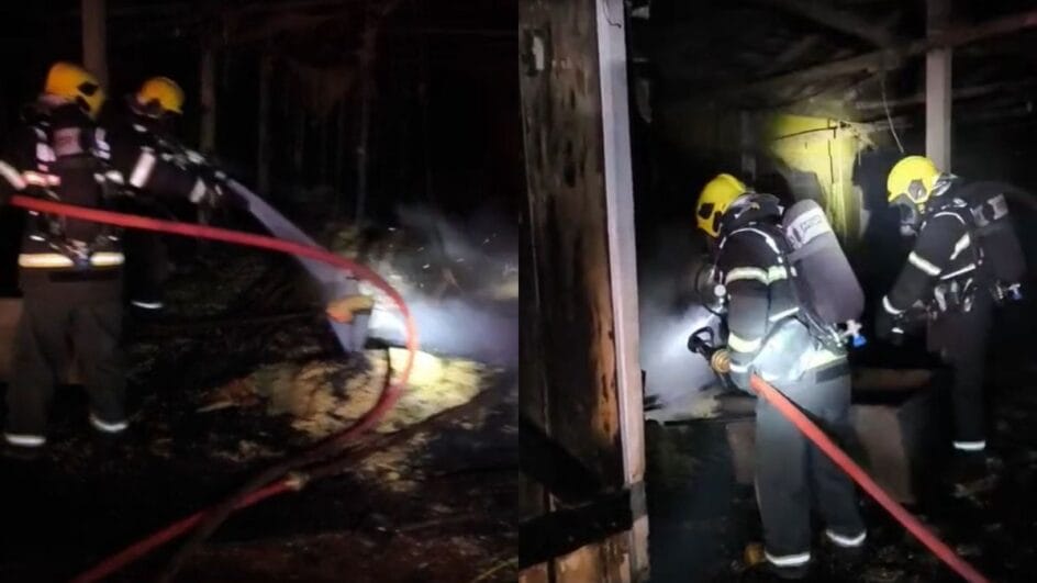 De acordo com o Corpo de Bombeiros, ao chegarem ao endereço, as equipes das viaturas encontraram o proprietário e familiares já combatendo as chamas com o uso de mangueiras, bombas costais e extintores de pó químico seco, aplicados principalmente na rede elétrica.