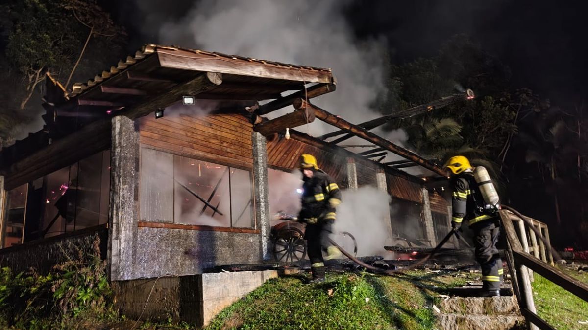 Vídeos mostram o tamanho das chamas que atingiram a edificação. Para acabar com o fogo e proteger o restante da propriedade, foram mobilizadas equipes dos quartéis de Biguaçu e Serraria, totalizando 11 bombeiros militares.