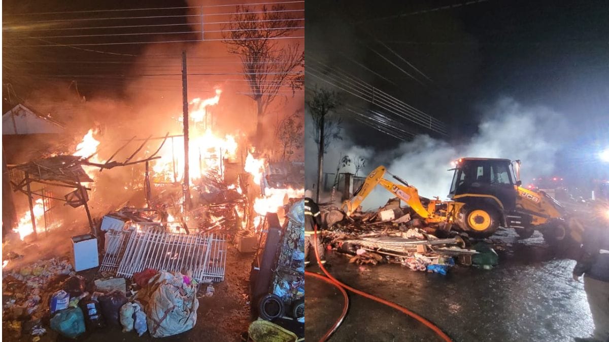 Um incêndio de grandes proporções mobilizou equipes dos bombeiros de Lages e de Correia Pinto na noite desta segunda-feira (2), na Rua Porto Seguro, no bairro Guarujá, em Lages.