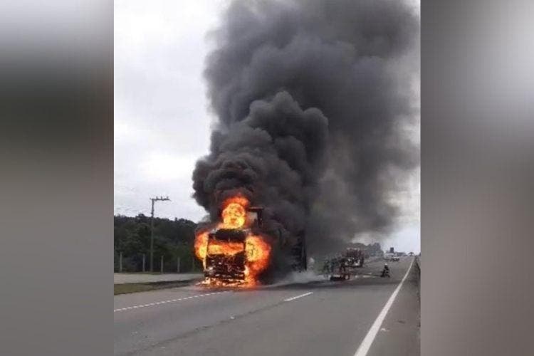 Um caminhão pegou fogo e causou a interdição da BR-101 na tarde desta sexta-feira (24) em Laguna, no Sul do Estado. Apesar do susto, ninguém ficou ferido. As informações são do g1 SC.