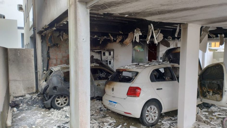 Um incêndio em uma garagem de um prédio no bairro dos Ingleses, no Norte de Florianópolis, danificou dois carros e uma motocicleta estacionados no local nesta quinta-feira (25). As chamas chegaram a atingir o forro da estrutura e foram contidas por uma equipe do Corpo de Bombeiros Militar catarinense (CBMSC) antes de se alastrarem. A ocorrência não deixou feridos.
