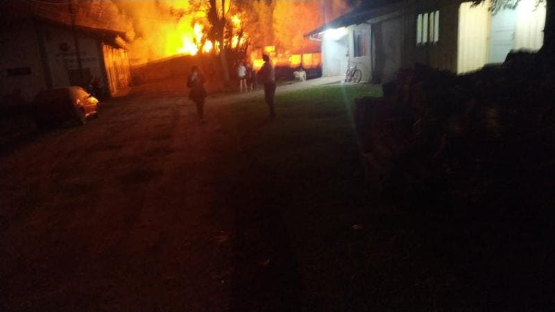Um incêndio destruiu o galpão de uma empresa de madeiras em São Bento do Sul na noite deste sábado (9). Quando os bombeiros chegaram, o local já estava tomado pelas chamas.