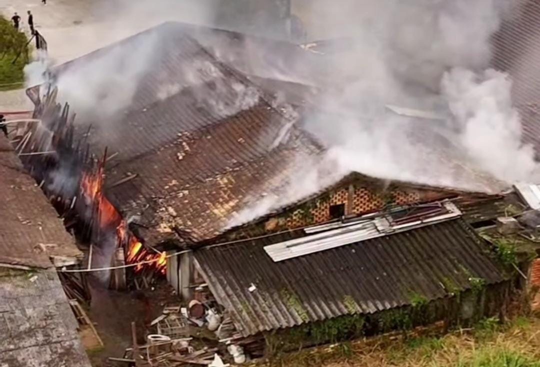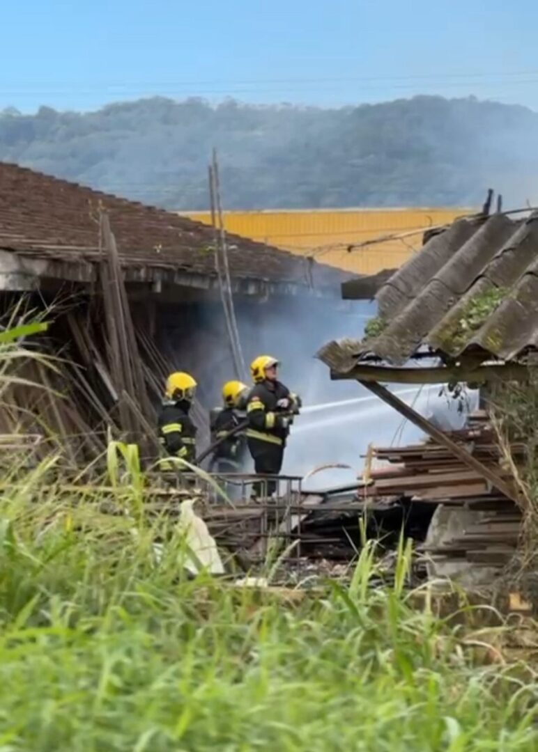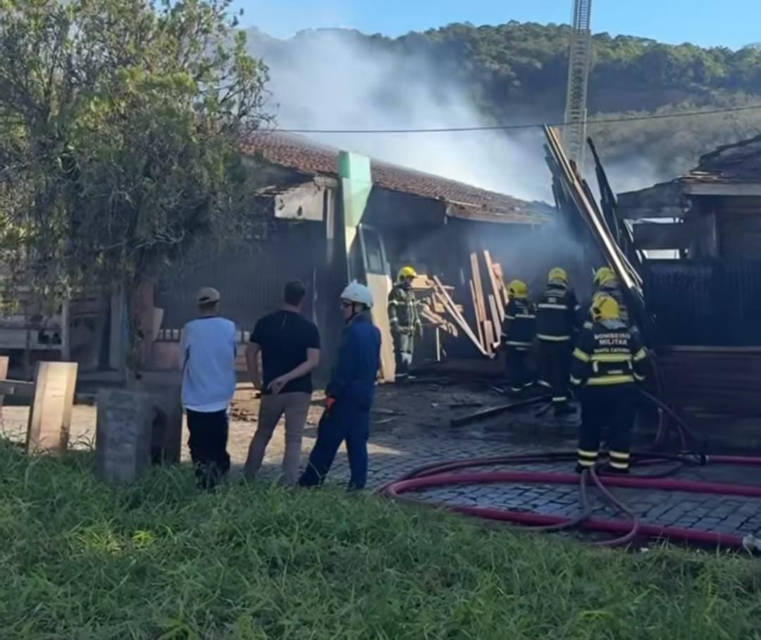 Um galpão onde eram fabricados móveis de MDF pegou fogo por volta das 11h desta segunda-feira (21) no Paraíso dos Pôneis, em Gaspar. Os bombeiros levaram uma hora para apagar o incêndio e, até o fim da tarde, as equipes ainda estavam no local trabalhando no rescaldo.